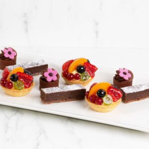 Dessertene anrettes i egnede fat eller boller klar for servering, saus og krem leveres i forseglet emballasje og må anrettes klar til servering av kunden.