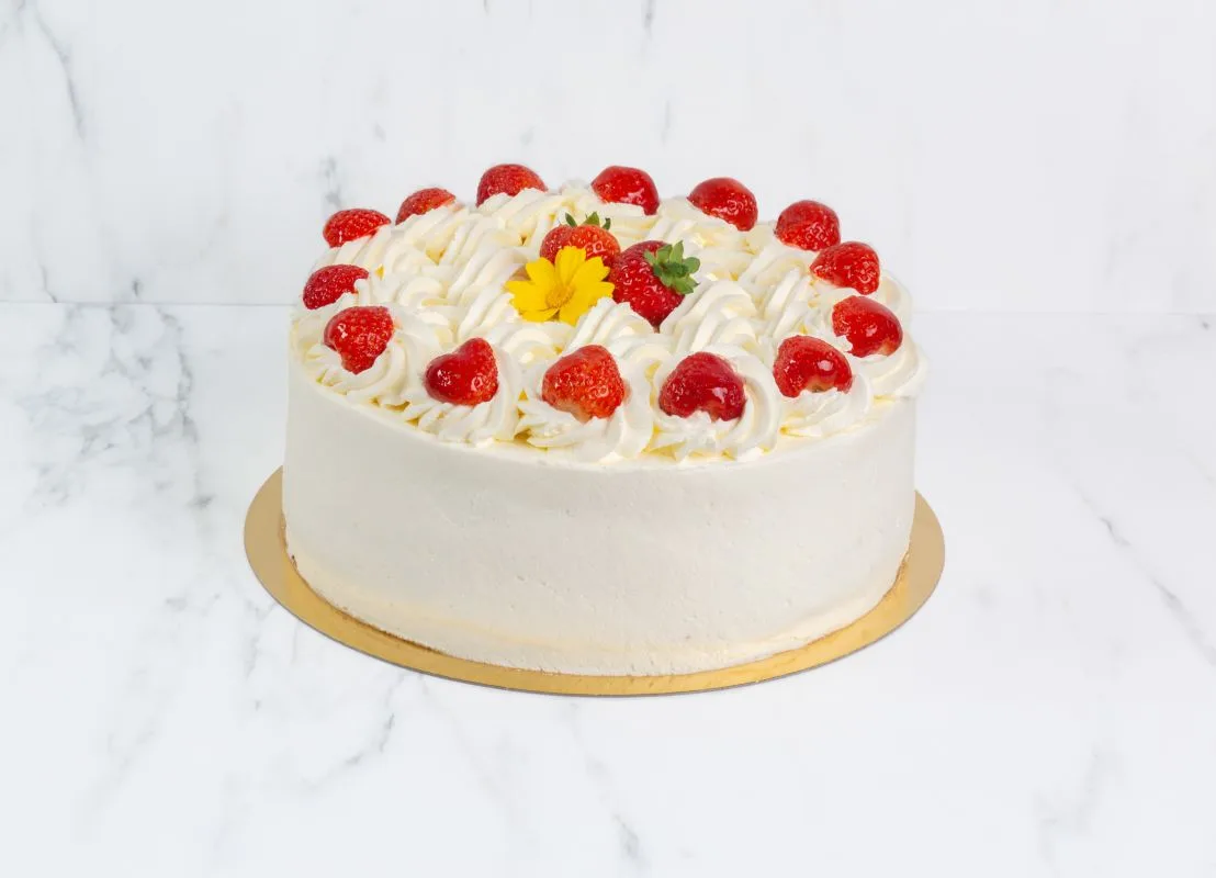 Kremkake med fløtekrem og jordbær. Vær oppmerksom på at kakene ikke egner seg til skrift.