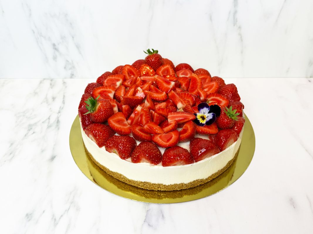 Ostekake med jordbær.