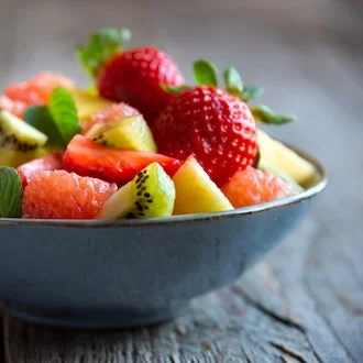 Fruktsalat med vaniljeis